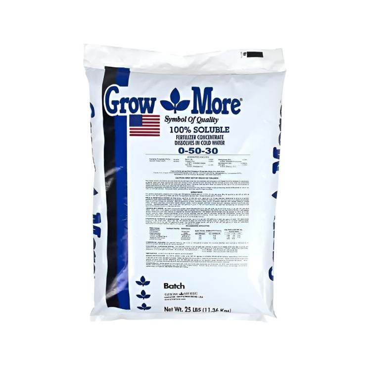 GROWMORE 0-50-30 25 LBS BLUE, Formulated to supply sufficient amounts of extra nutrients for high yields