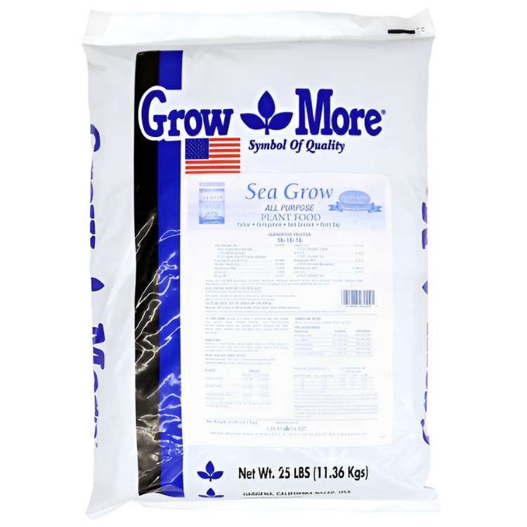 Grow More Sea Grow All Purpose is a water-soluble fertilizer with kelp extract, naturally-occurring plant hormones, micronutrients and yucca extract. This fertilizer helps promote healthy root development and lush foliage.