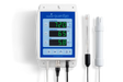 Adjustable brightness display. Large easy-to-read, plant-safe green LED displays. Selectable values for conductivity and temperature. Simple push button pH calibration system. No calibration required for conductivity and temperature. Silent alarm for both high and low settings. Settings retained when power lost (non-volatile memory). Temperature compensation. An international power supply. Water-resistant design. 2 year Bluelab® Guarantee (6 months on probe).