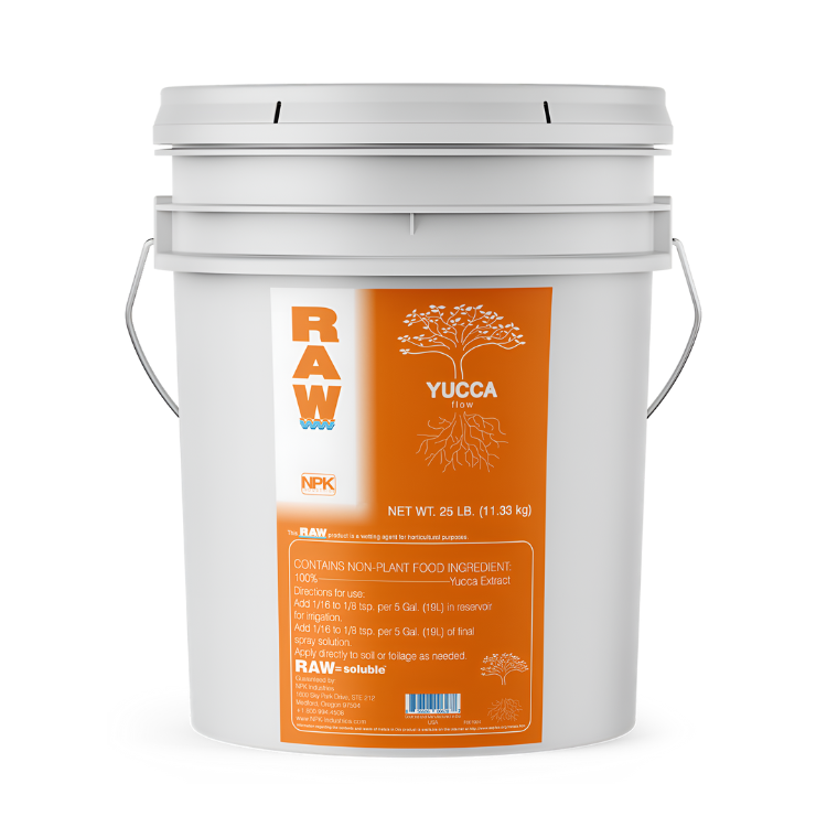 RAW Yucca is made from 100% natural yucca extract from the plant Yucca Schidigera. It can be used as wetting agent for nutrient solutions and foliar sprays and is great for flushing excess salts from the root Zone. When used on soils, it helps water and nutrients penetrate deeper and more evenly into the root zone. We recommend adding a pinch (1/16 tsp per 5 gallons) RAW Yucca to all foliar, nutrient and flush solutions. Works in conjunction with all nutrient and feeding programs.
