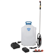 All-purpose sprayer ideal for herbicides, pesticides, liquid fertilizer and many home applications! This sprayer requires no manual pumping and is ideal for large jobs. The Rainmaker® Lithium Ion Backpack Sprayer is powered by a removable and rechargeable lithium-ion battery pack (included) that can last for hours on one charge. Other features include a high and low speed flow rate switch and 3 different sprayer nozzles. The trigger has a lock-on option that can be engaged for continuous spraying. Padded shoulder straps for added comfort. This sprayer has an integrated filter and 4 ft hose.
